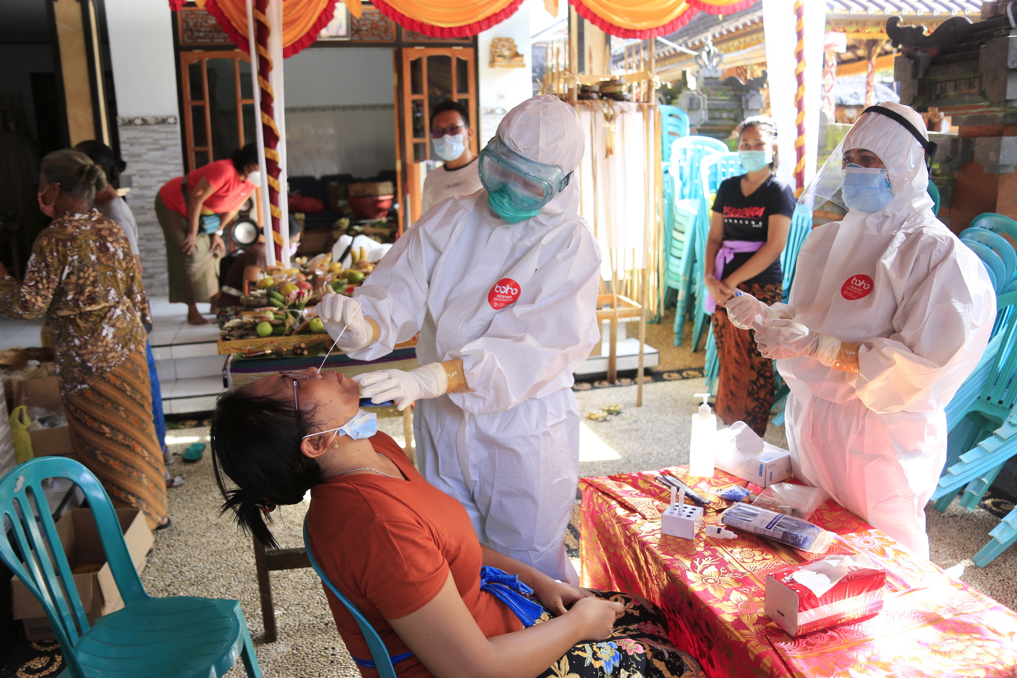 Pada hari yang sama, juga dilakukan tes cepat antigen kepada sepasang calon mempelai dan keluarga intinya di Banjar Sangkan Buana, Desa Adat Sangkan Buana. Total sebanyak 15 orang menjalani tes cepat. “Untuk keselamatan kita bersama sebaiknya dilakukan tes cepat antigen. Mudah-mudahan apa yang dilakukan pemerintah hari ini (kemarin) melalui Dinas Kesehatan secara gratis, bisa memutus penyebaran Covid-19 dan bersama-sama bisa mematuhi protokol kesehatan,” pesan Bupati Suwirta saat memantau tes cepat antigen tersebut. baw