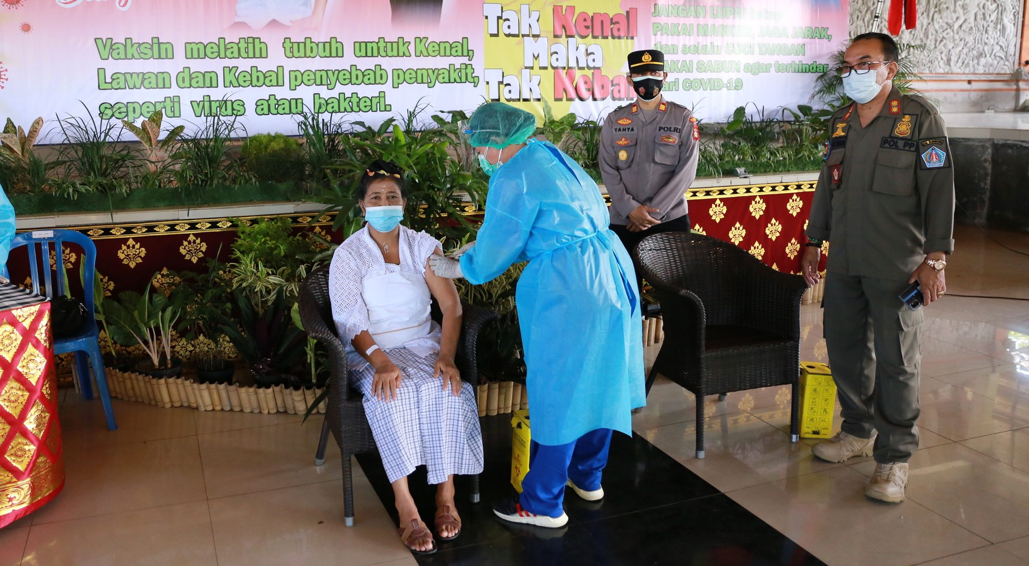 Kepala Dinas Kesehatan Klungkung, dr. Ni Made Adi Swapatni, memaparkan, sasaran vaksinasi terdiri dari 1.000 orang. Di Balai Budaya diambil 275 orang terdiri dari 30 orang sulinggih, 175 pedagang, 25 pegawai UPT Koperasi, 25 seniman, budayawan, pemuda, 15 anggota FKUB, dan 10 sopir.