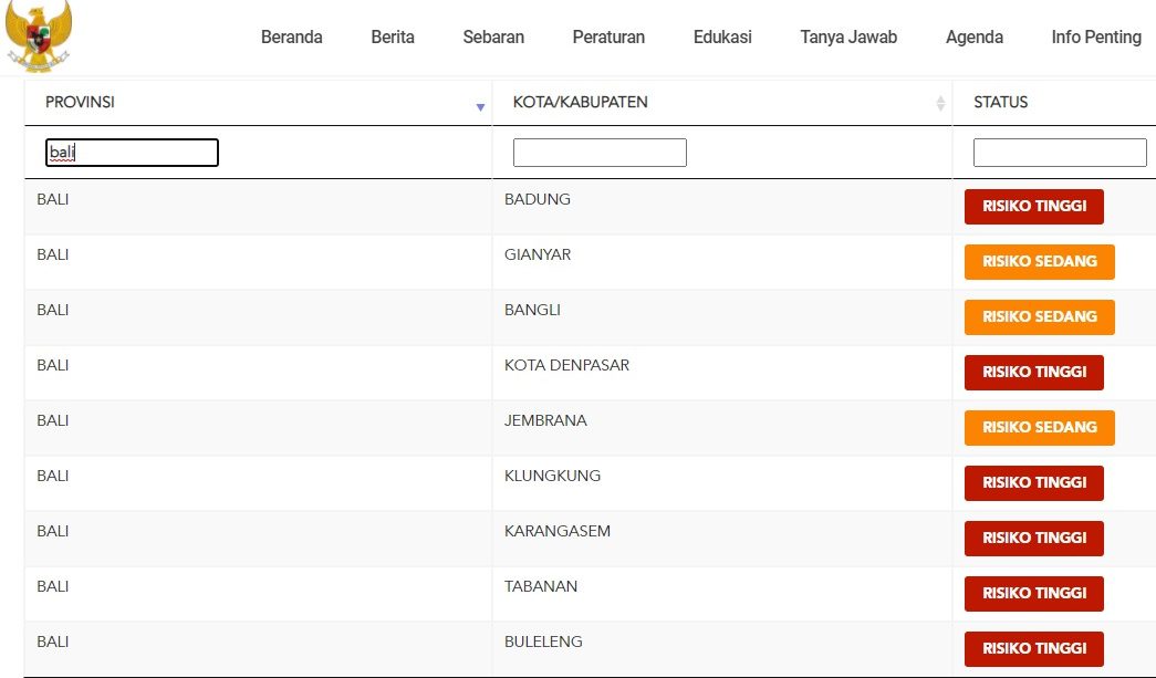 Ke-6 kabupaten/kota yang masih zone merah berdasarkan data yang bersumber dari https://covid19.go.id/peta-risiko yakni; Kota Denpasar, Kabupaten Badung, Buleleng, Karangasem, Tabanan dan Klungkung. ”Data ini diolah berdasarkan beberapa indikator oleh Satgas Nasional,” terang Sekretaris Satuan Tugas (Satgas) Penanganan Covid-19 Provinsi Bali, I Made Rentin, Kamis (2/9/2021).
