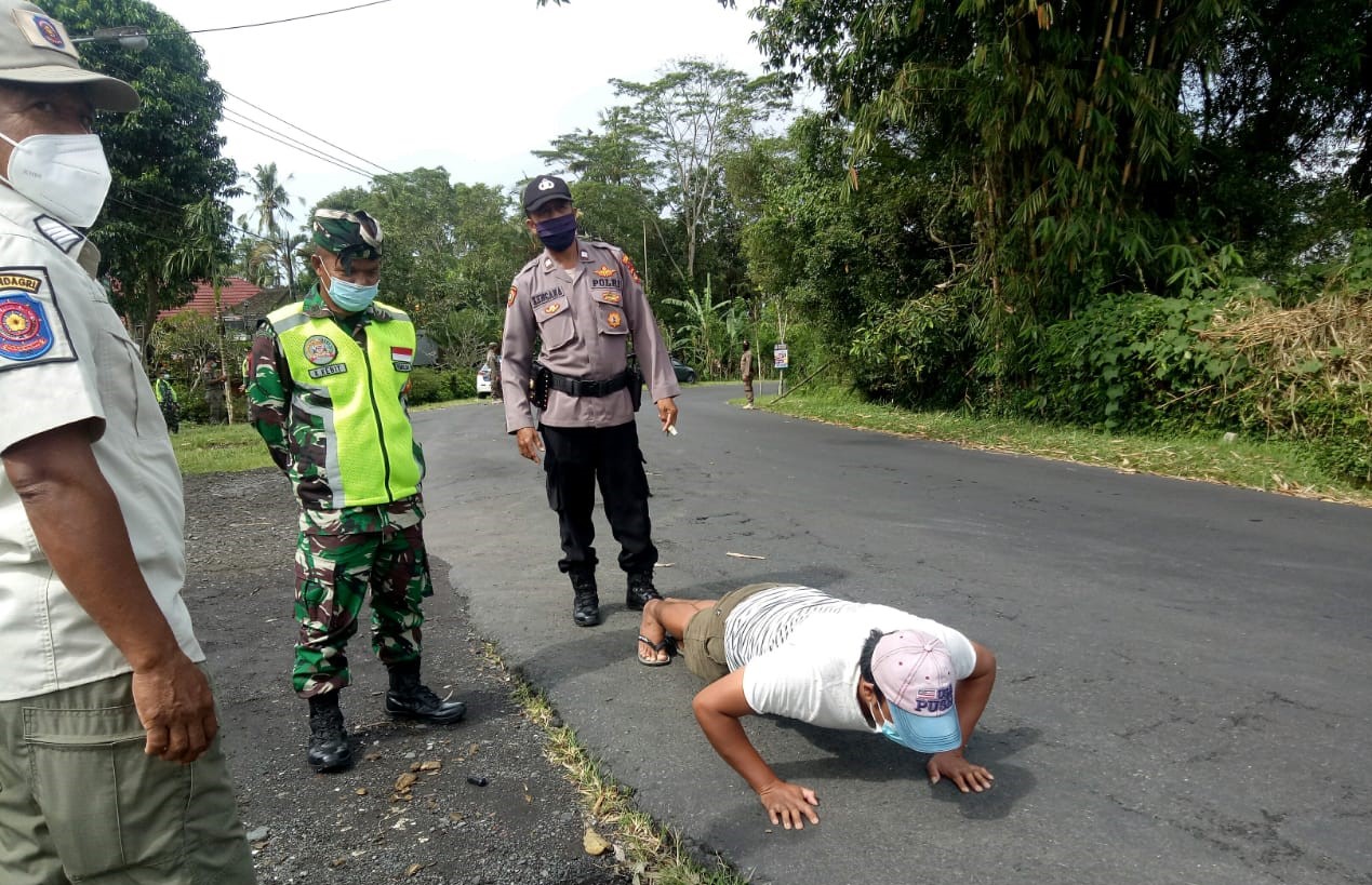 Sebelum pelanggar diberikan masker, petugas gabungan memberi sanksi teguran, juga sanksi fisik berupa push up dan lain-lain guna memberi efek jera. Meski kesadaran masyarakat menggunakan masker sudah meningkat, tapi masih saja ditemukan warga tidak pakai masker.