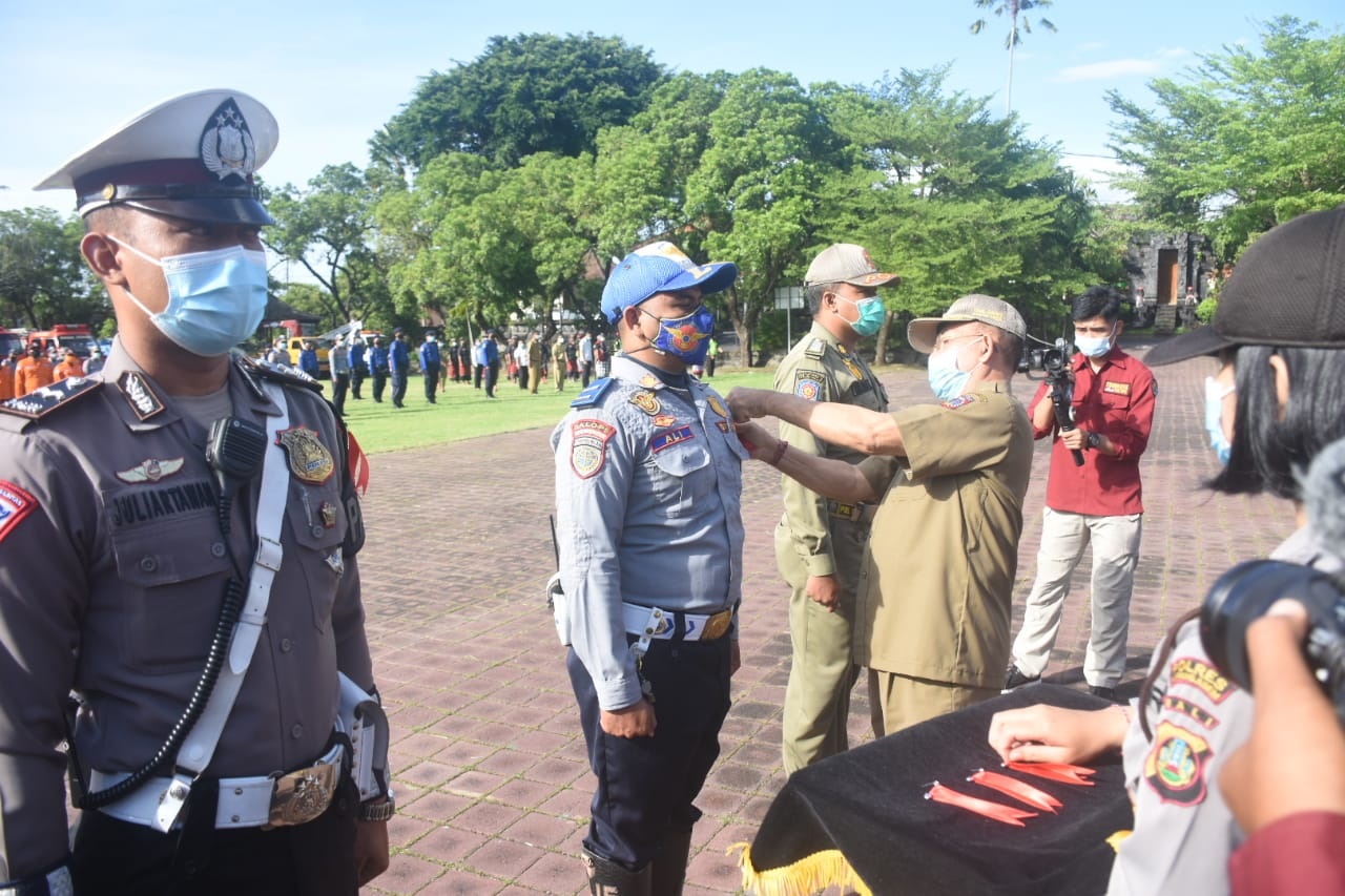 KARANGASEM – Wakil Bupati Karangasem, I Wayan Artha Dipa, memimpin apel gelar pasukan dalam rangka Operasi Lilin 2020, disaksikan Kapolres Karangasem, Nyoman Suartini. Dalam acara itu, Artha Dipa sebagai Inspektur Upacara di Lapangan Tanah Aron, Senin (21/12/2020) sekaligus menyematkan pita operasi kepada perwakilan pasukan.