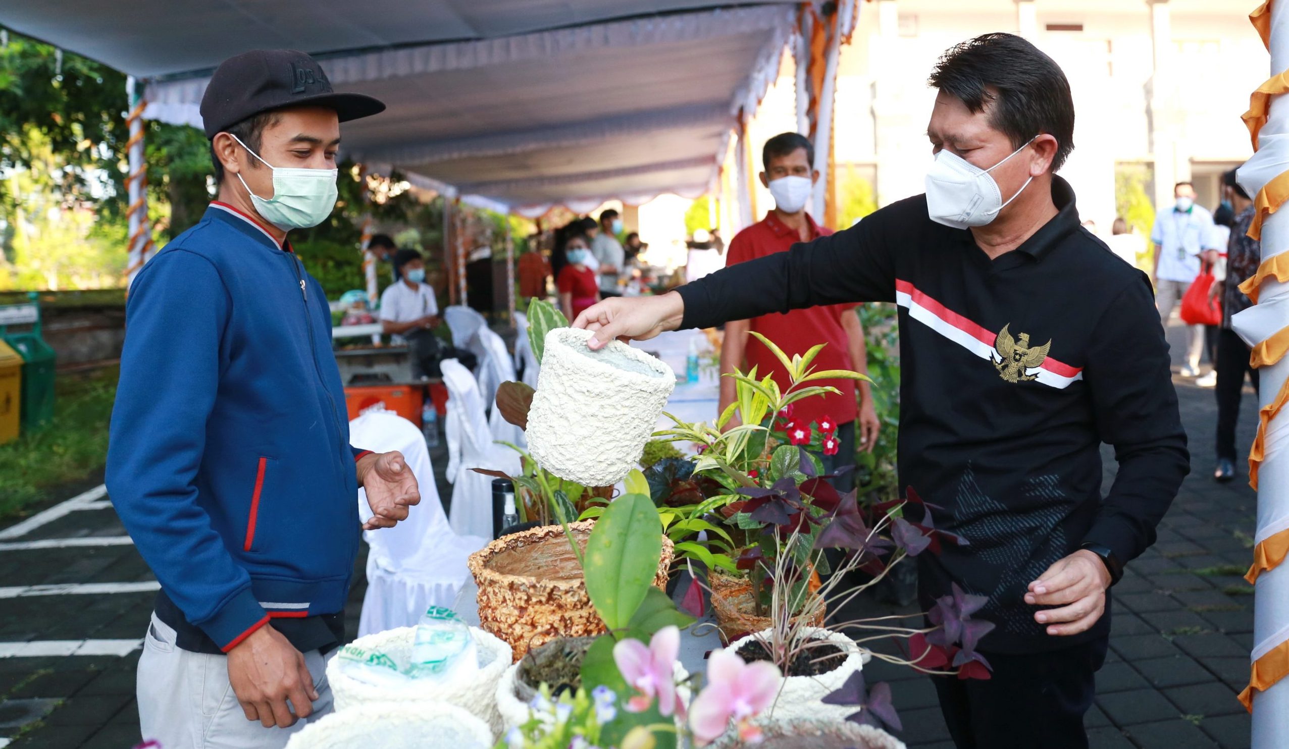 KLUNGKUNG – Pelaksanaan pasar gotong royong untuk menyambut Hari Raya Galungan dan Kuningan disambut baik Bupati Klungkung, I Nyoman Suwirta; bersama Ayu Suwirta, karena digelar di areal parkir selatan Pura Jagatnatha, Klungkung, Jumat (9/4/2021).