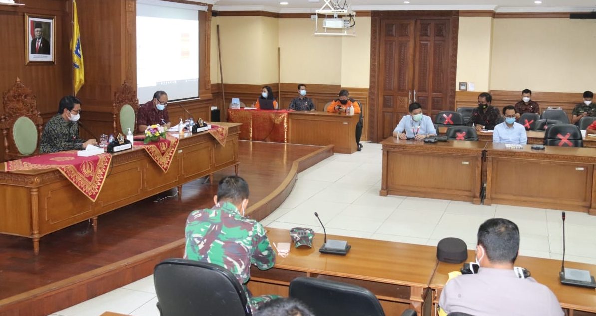 Rapat dihadiri unsur TNI/Polri, Kepala BPBD, seluruh Satgas Covid-19 Kabupaten Badung dan para Camat serta OPD terkait di lingkungan Pemkab Badung.