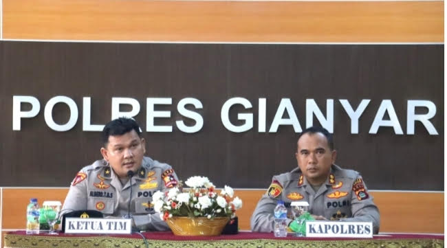 GIANYAR – Polres Gianyar menerima Tim Pengkajian tentang Implementasi Kebijakan Polri Bidang Opsnal Tahun 2022, Rabu (7/9/2022) di Aula Tribrata Polres Gianyar.
