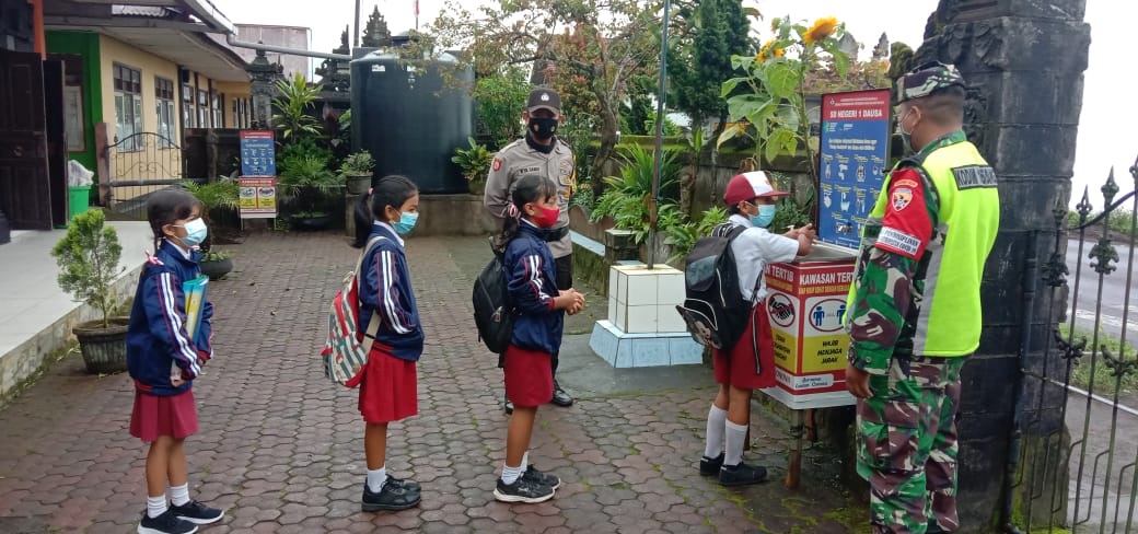 BANGLI – Kodim 1626/Bangli melalui jajaran babinsa akan memantau dan mengawasi proses pembelajaran tatap muka (PTM) terbatas secara bergiliran di sekolah-sekolah yang akan diberlakukan. Yang ditekankan dalam pemantauan yakni mulai dari sebelum masuk kelas sampai aktivitas di ruang kelas, serta mengecek perlengkapan siswa terhadap protokol kesehatan Covid-19.