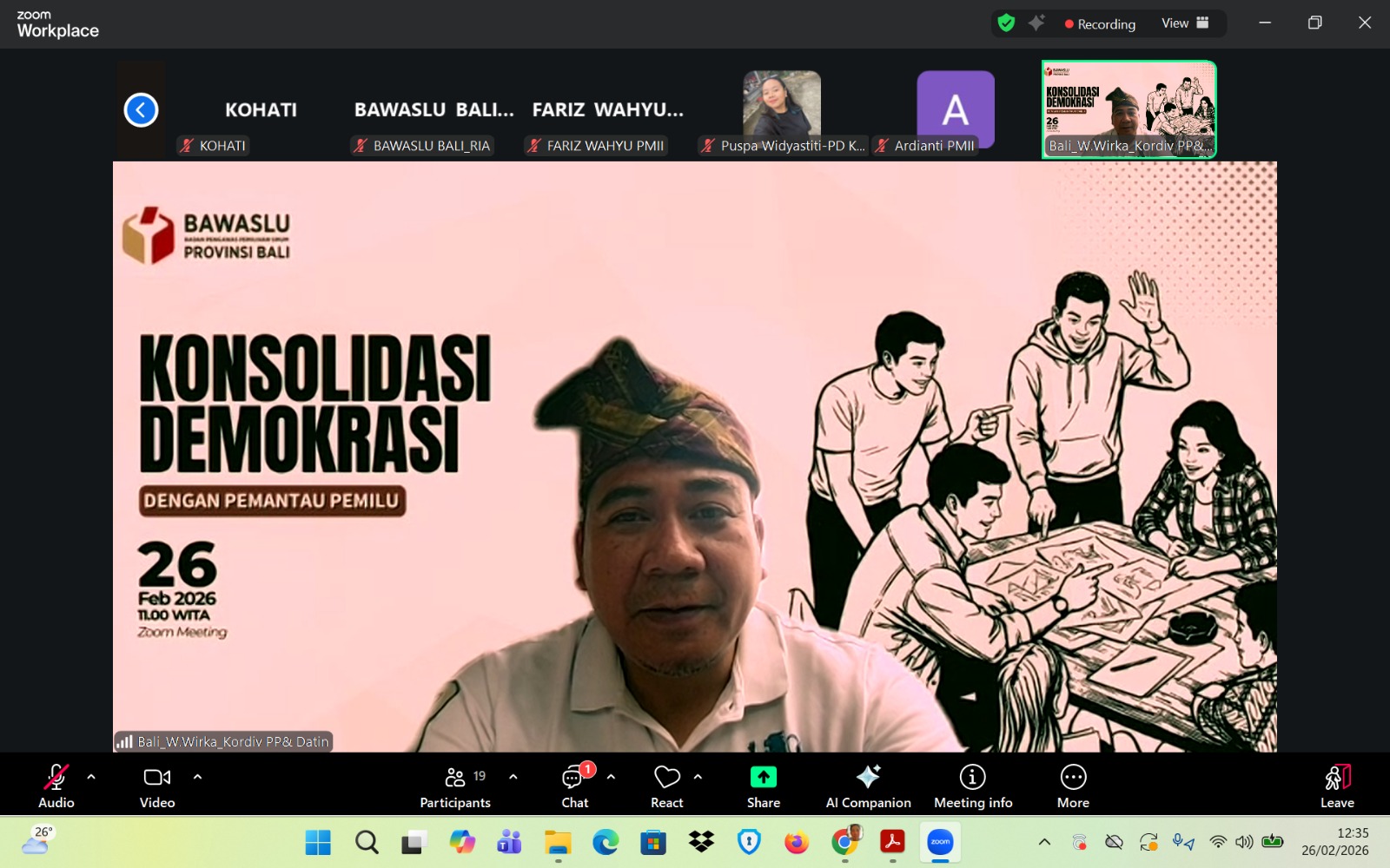 POSMERDEKA.COM, DENPASAR – Bawaslu Bali menerima kritik tajam dalam agenda “Konsolidasi Demokrasi bersama Pemantau Pemilu” yang digelar secara daring, Kamis (26/2/2026). Forum yang mempertemukan Bawaslu dengan pemantau pemilu terakreditasi, yakni Pergerakan Mahasiswa Islam Indonesia (PMII), Kesatuan Mahasiswa Hindu Dharma Indonesia (KMHDI), Perhimpunan Mahasiswa Katolik Republik Indonesia (PMKRI), dan Korps HMI-Wati (Kohati) ini, berubah menjadi ruang otokritik terhadap kinerja pengawas pemilu.
