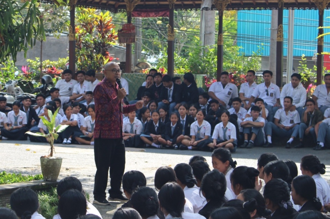 POSMERDEKA.COM, GIANYAR – Bawaslu Gianyar mendatangi SMK PGRI Payangan untuk sosialisasi Pemilu 2024 kepada pemilih pemula, Selasa (3/10/2023). Ketua Bawaslu Gianyar, I Wayan Hartawan, hadir sebagai narasumber dengan didampingi Panwaslu Kecamatan Payangan.