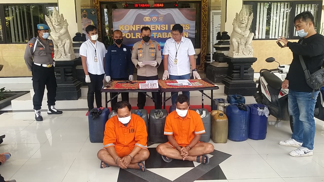TABANAN – Polres Tabanan menangkap dua tersangka yang menyalahgunakan pengangkutan dan/atau niaga bahan bakar minyak (BBM) jenis solar yang disubsidi pemerintah.