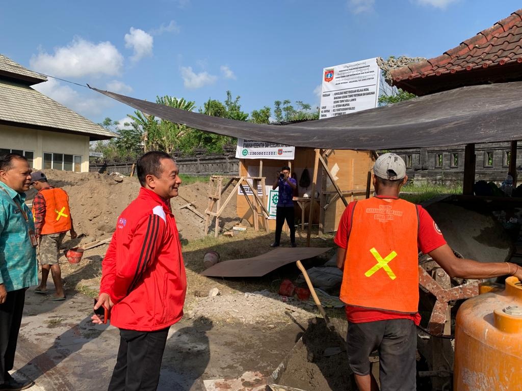 Didampingi Kepala Dinas Pendidikan, Kepemudaan, dan Olahraga Karangasem, I Wayan Sutrisna, dia melihat pengerjaan untuk memastikan kualitas proyek sesuai yang diharapkan.