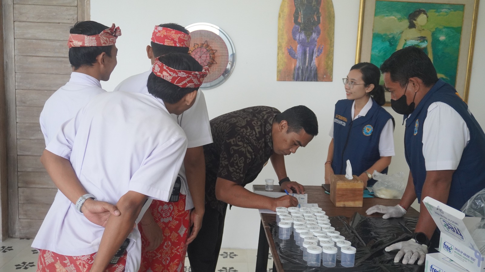 POSMERDEKA.COM, KARANGASEM – Badan Narkotika Nasional Kabupaten (BNNK) Karangasem melaksanakan tes urine di Wapa di Uma Sidemen Resort, Banjar Dinas Tebola, Sidemen, Karangasem, pada Rabu (27/8/2025). Sebanyak 40 karyawan dari total 104 orang menjalani pemeriksaan, atau sekitar 40 persen dari jumlah keseluruhan. Hasil tes menunjukkan seluruh karyawan dinyatakan negatif narkoba.
