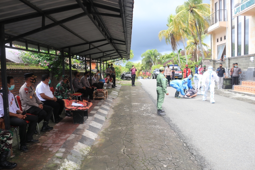 Dalam perlombaan tersebut juga dilaksanakan simulasi penanganan pasien Covid-19 oleh Tim Satgas Covid-19 Desa Penyaringan disaksikan oleh Tim Juri dan Forkopimda Jembrana.