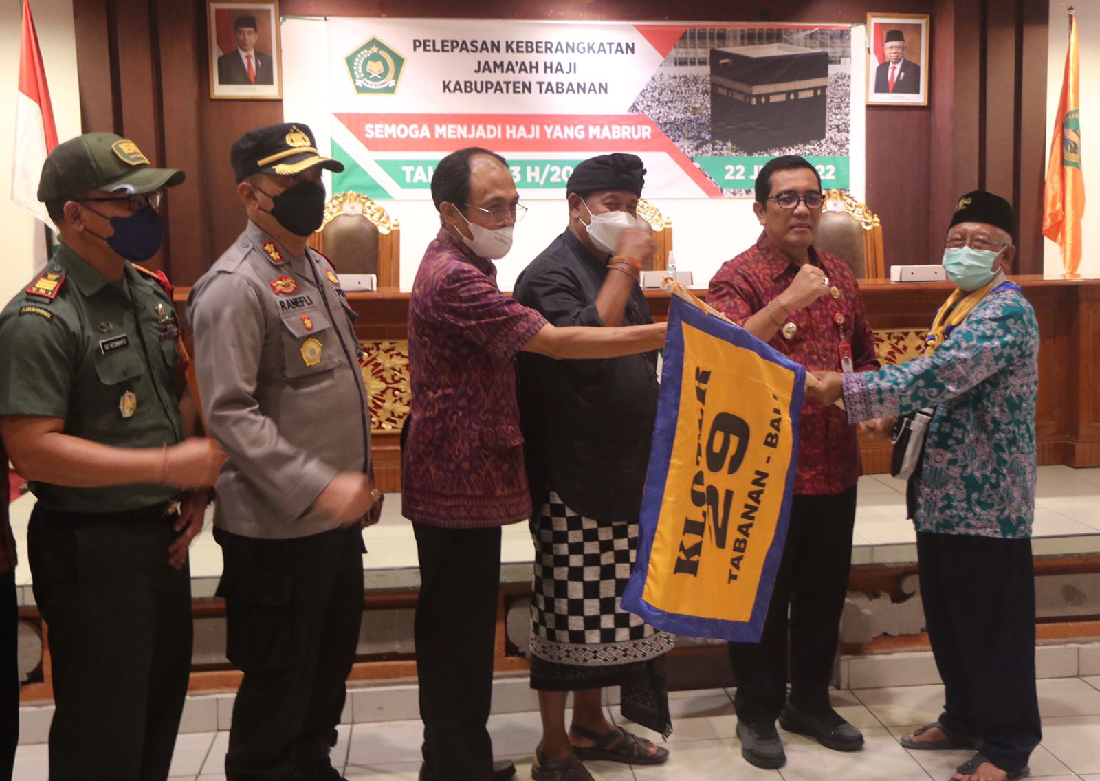 TABANAN – Bupati Tabanan, I Komang Gede Sanjaya, melepas pemberangkatan calon jamaah haji Kabupaten Tabanan 1443 H/2022, di Ruang Rapat Lantai III Kantor Bupati Tabanan, Rabu (22/6/2022). Ada 13 orang calon jamaah haji yang terdaftar di Tabanan, berasal dari Kecamatan Tabanan, Kediri, dan Selemadeg.