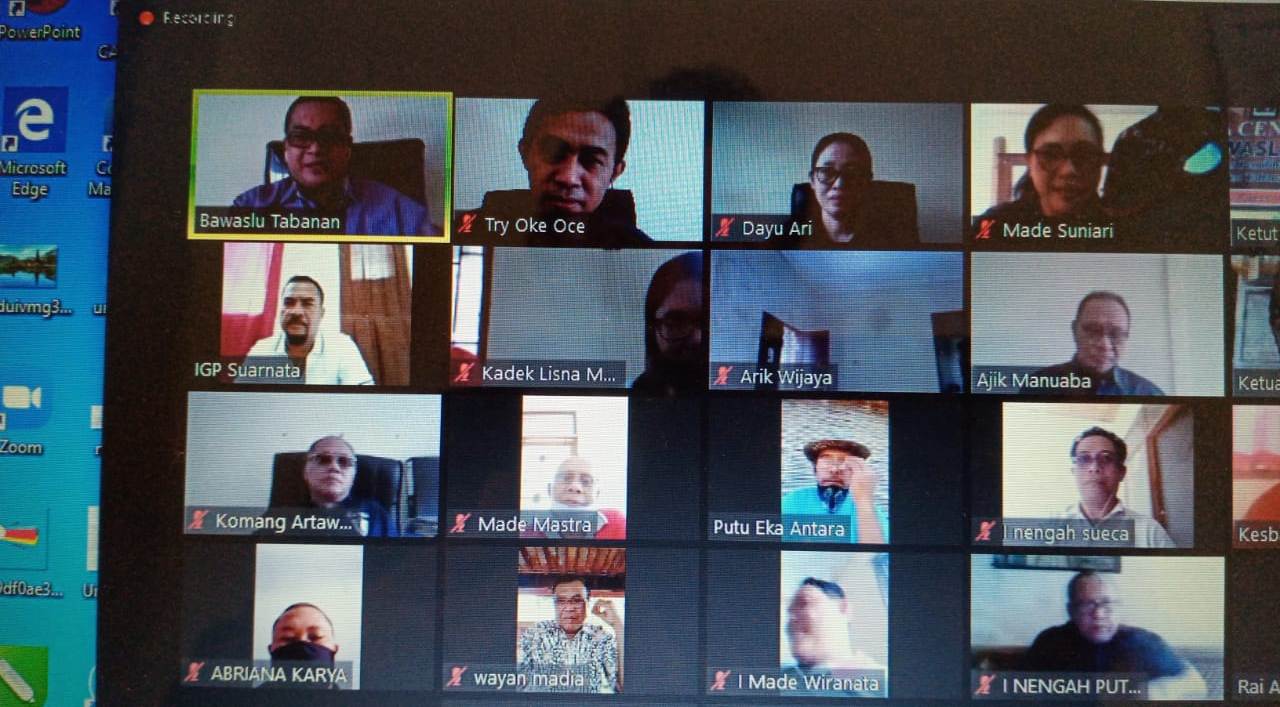 TABANAN – Kondisi ekonomi masyarakat yang nyaris semua merosot dihajar pandemi Covid-19, rentan menghasilkan politik transaksional berupa politik uang dalam Pilkada 2020. Selain itu, adanya pembatasan sosial dan fisik juga berpotensi mengurangi tingkat partisipasi pemilih menggunakan hak suara. Dua hal tersebut termasuk dalam pembahasan saat rapat koordinasi secara virtual yang diselenggarakan Bawaslu Tabanan, belum lama ini.