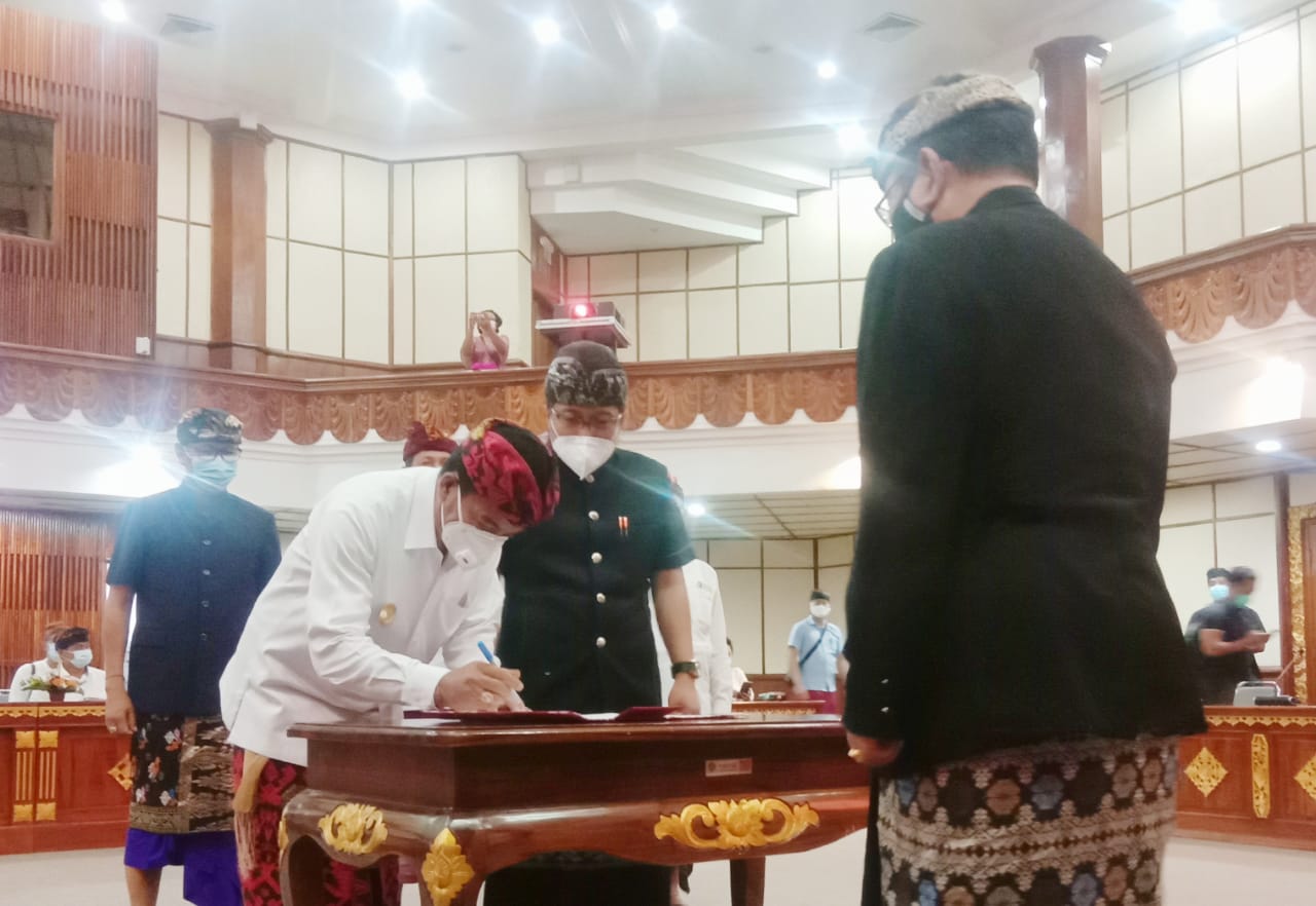 DENPASAR – Wakil Gubernur Bali, Tjokorda Oka Artha Ardana Sukawati (Cok Ace), memimpin acara serah terima nota pelaksanaan tugas Pjs Bupati Badung kepada Bupati Badung dan Pjs Bupati Kabupaten Karangasem kepada Bupati Karangasem. Dalam acara tersebut, Bupati Karangasem IGA Mas Sumatri tampak tidak hadir mengikuti acara serah terima ini. Serah-terima untuk Kabupaten Karangasem hanya diwakili Wakil Bupati Karangasem, I Wayan Artha Dipa.