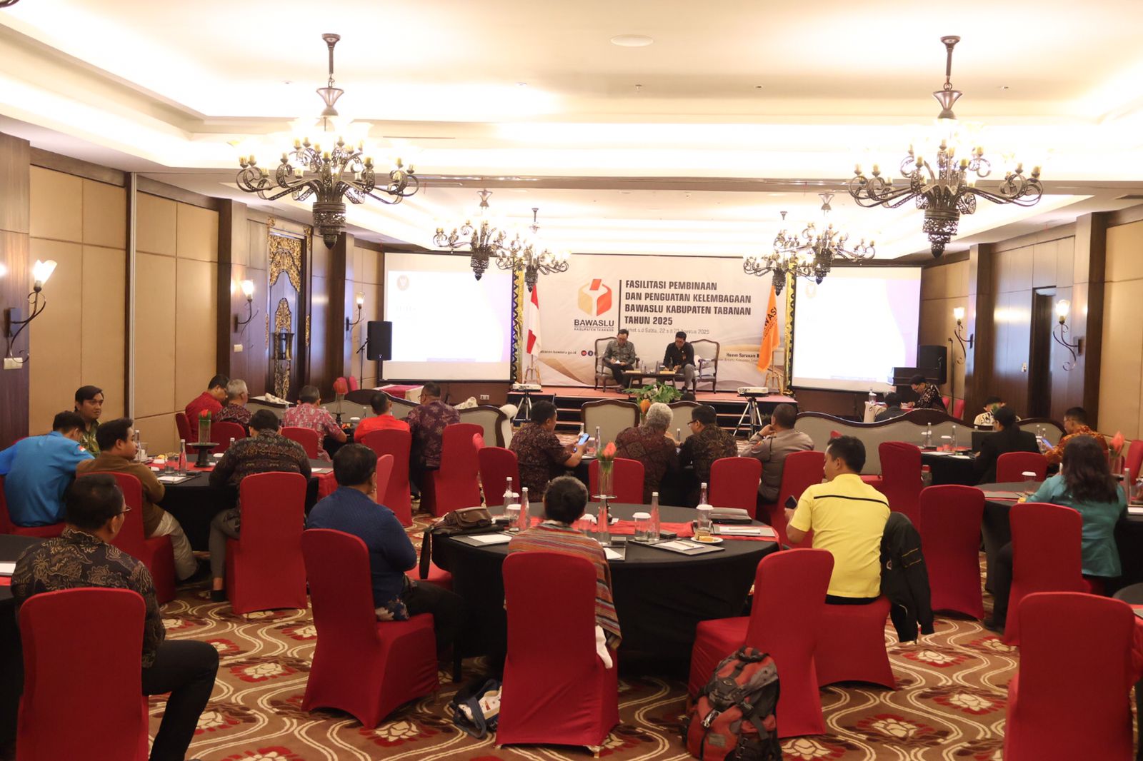 POSMERDEKA.COM, TABANAN – Bawaslu Tabanan melaksanakan kegiatan fasilitasi pembinaan dan penguatan kelembagaan, di Homm Saranam, Baturiti, Tabanan. Kegiatan yang berlangsung dua hari (22-23 Agustus 2025) itu, bertujuan memastikan demokrasi tetap berjalan sesuai dengan koridor yang ditentukan, dan tidak tergelincir dari relnya. Peserta yang hadir dari Forkopimda Tabanan, Ketua PWI Tabanan, Ketua Pewarta, akademisi, organisasi masyarakat, serta Sekretariat Bawaslu Tabanan.