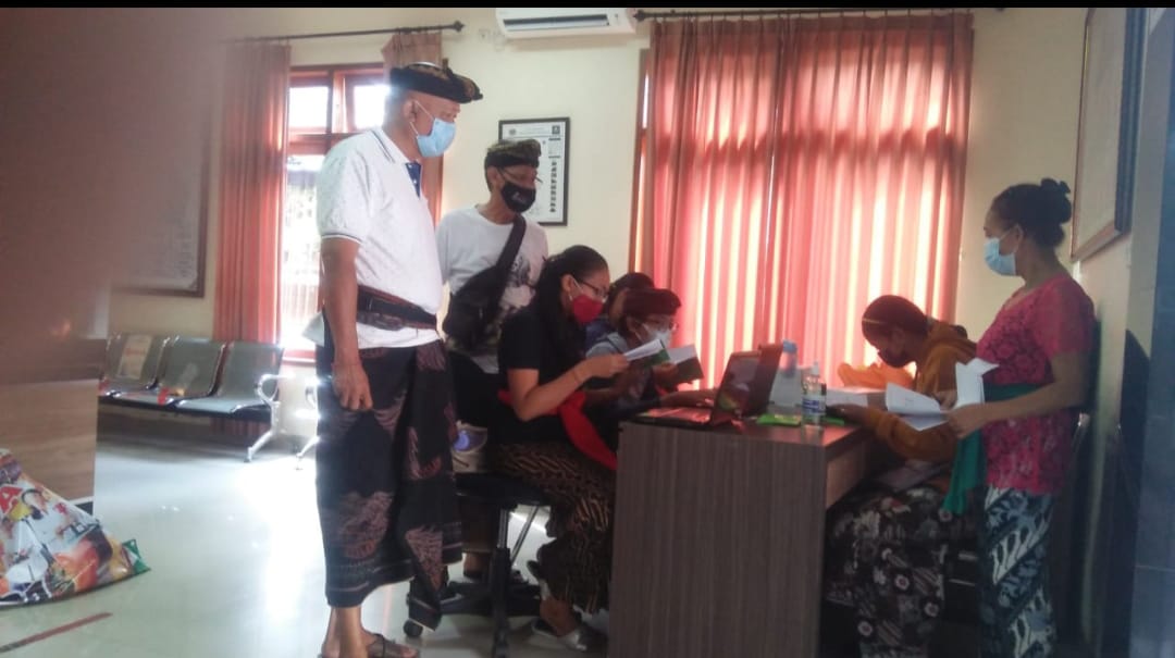 DENPASAR – Guna mendukung pelestarian bahasa dan aksara Bali, Desa Dangin Puri Kaja menggelar pembinaan nyurat aksara Bali berbasis Bali Simbar, di Kantor Desa setempat, Minggu (13/6/2021).