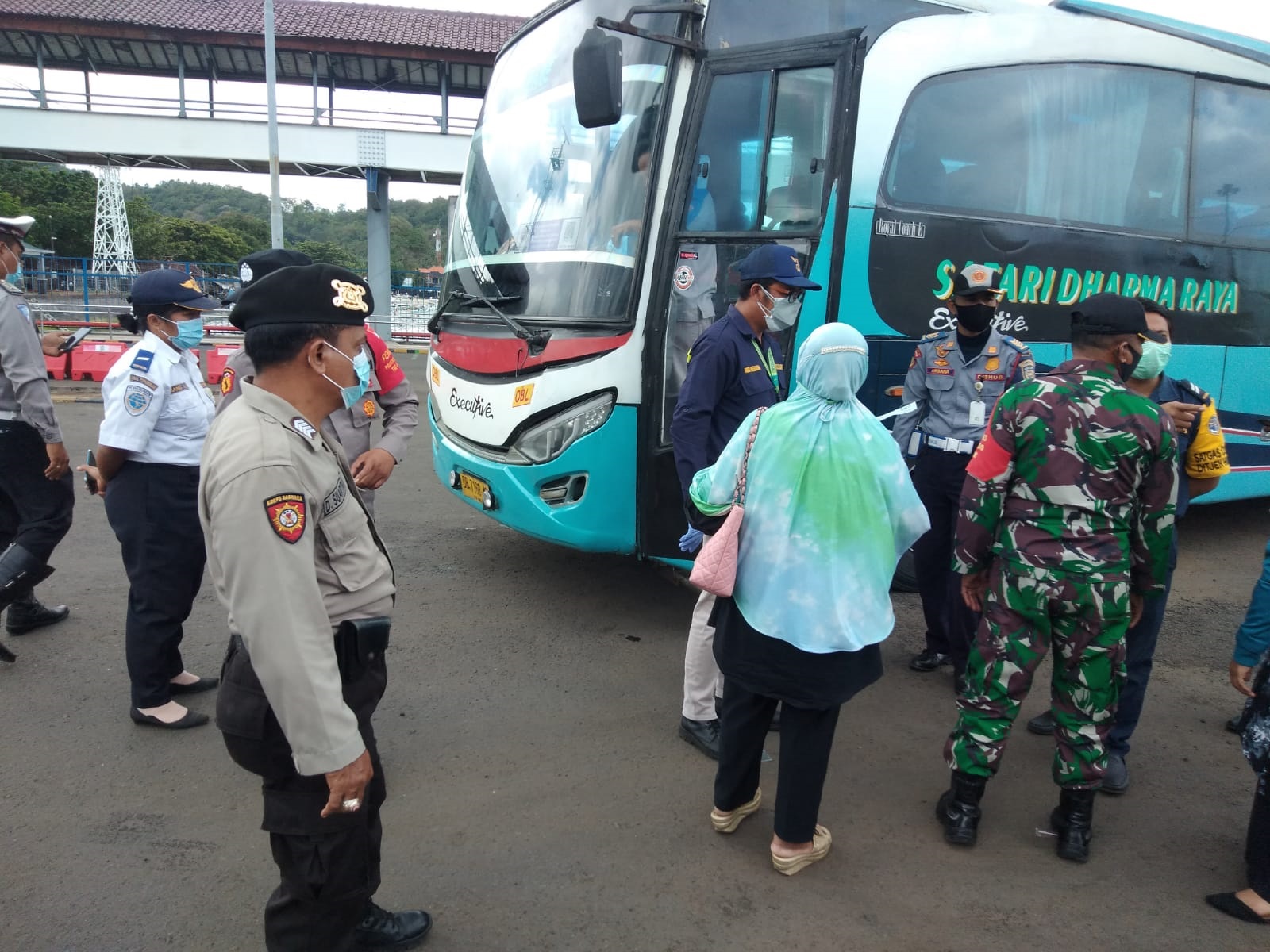 Menindaklanjuti instruksi itu, Tim Pengawas Covid-19 Pelabuhan Padangbai yang terdiri dari unsur Polri, TNI, KKP dan BPBD memeriksa seluruh penumpang bus Safari Dharma Raya DR 7168 AC yang datang dari Lembar, Lombok, Kamis (2/9/2021). Belakangan ditemukan dua penumpang tidak membawa suket vaksin.