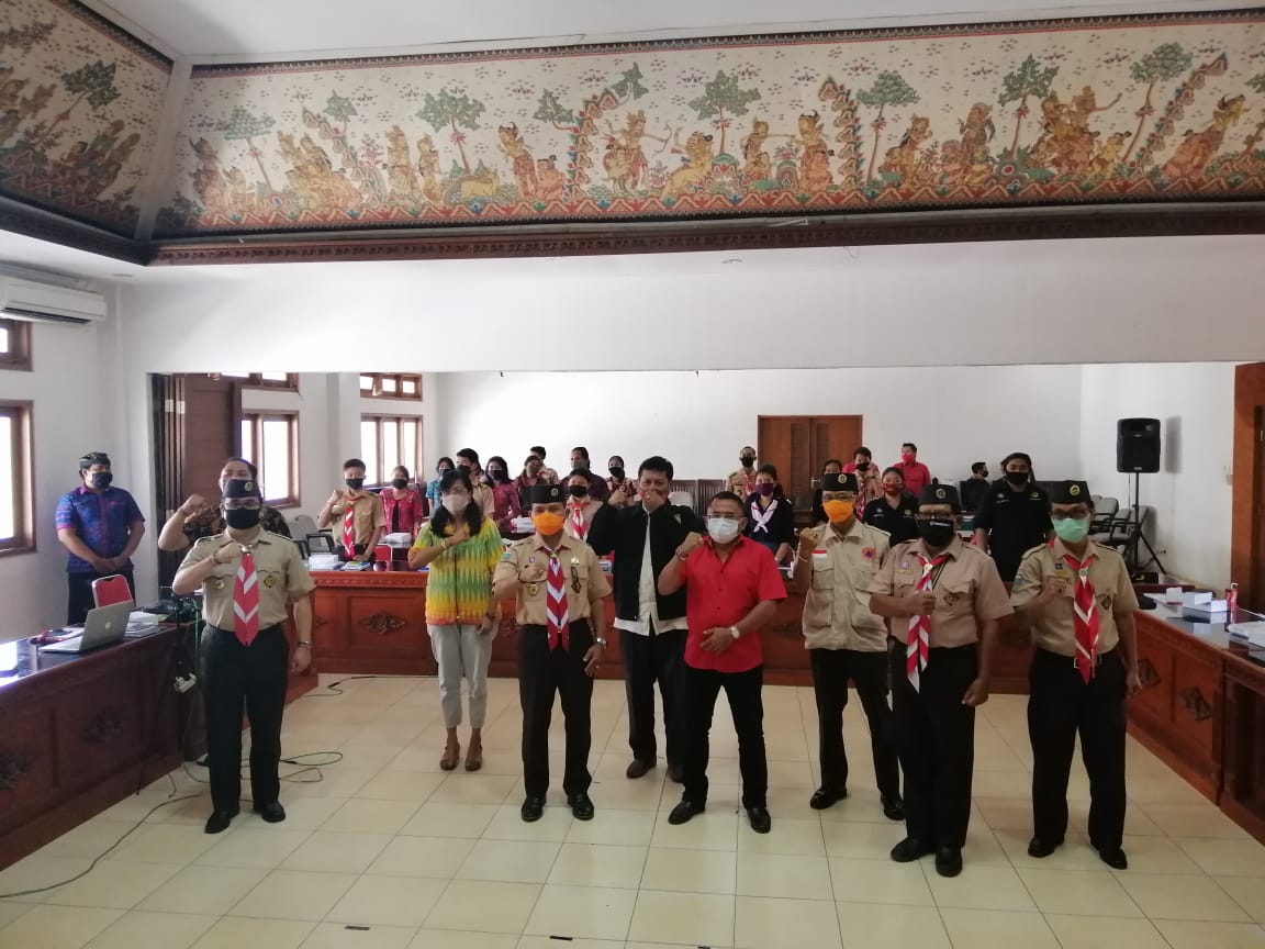Dalam kegiatan tatap muka dan webinar yang diikuti lebih dari 150 peserta ini, hadiri Ketua Kwarda Bali, I Made Rentin, bersama jajaran wakil ketua dan pengurus Gerakan Pramuka se-Bali yang masuk dalam jalur webinar. Kegiatan ini termasuk pertama dilaksanakan menggunakan gabungan cara tatap muka dan webinar.