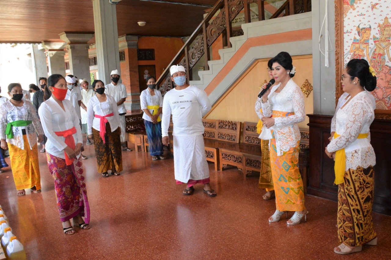 DENPASAR – Bertepatan dengan piodalan di Pura Dharma Praja Udiyana, Kantor DPRD Provinsi Bali, Minggu (5/7), Gatriwara DPRD provinsi Bali menggelar aksi sosial dengan tema “Berbagi Kasih”. Para istri anggota Dewan ini menyerahkan bantuan berupa beras hingga minyak goreng kepada tukang kebun, pramusaji, dan cleaning service yang sehari-hari bekerja di gedung DPRD Provinsi Bali. Bantuan tersebut berasal dari penggalangan dana pribadi anggota Gatriwara dan tambahan dari kas bazar tahun lalu.