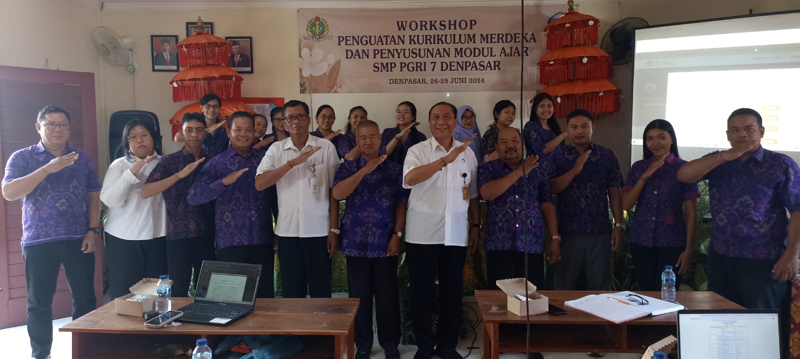 POSMERDEKA.COM, DENPASAR – SMP PGRI 7 Denpasar secara kontinyu menggelar workshop penguatan kurikulum dan penyusunan modul ajar. Pada Rabu (18/6/2024), seluruh guru dikumpulkan untuk mengikuti workshop penguatan Kurikulum Merdeka dan penyusunan modul ajar. Agenda workshop dibuka Kepala Dinas Pendidikan Kepemudaan dan Olahraga Kota Denpasar, AA Gede Wiratama.