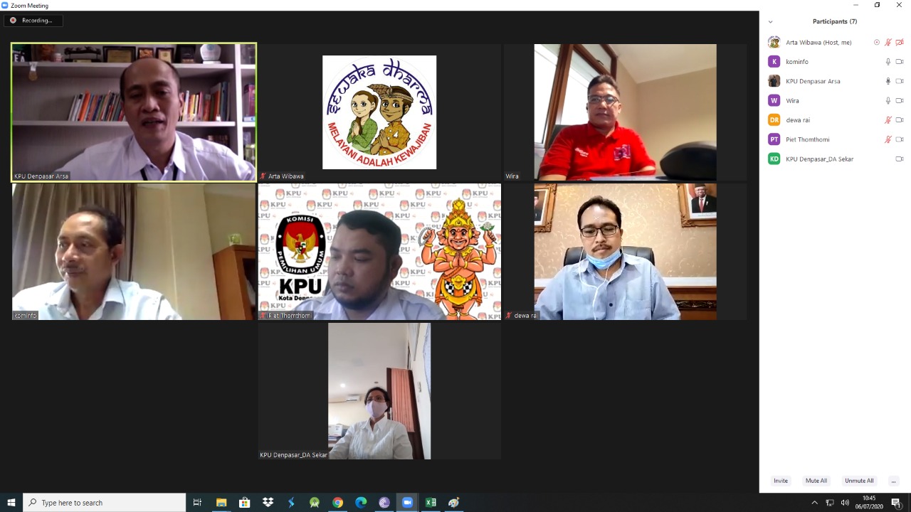 “Pilwali diundur menjadi Rabu 9 Desember 2020 yang tadinya 23 September 2020,” jelas Ketua Komisi Pemilihan Umum (KPU) Kota Denpasar Wayan Arsa Jaya saat rapat virtual dengan Kepala Dinas Komunikasi Informatika dan Statistik (Kominfos) Kota Denpasar I Dewa Made Agung SE MS.Si dan Kepala Bagian Humas dan Protokol Setda Kota I Dewa Gede Rai, S.Sos M.Si, Senin (6/7/2020). Hadir pula divisi Hukum KPU Kota Denpasar Sibro Mulissyi dan anggota Divisi Perencanaan, Data dan Informasi Dewa Ayu Sekar.
