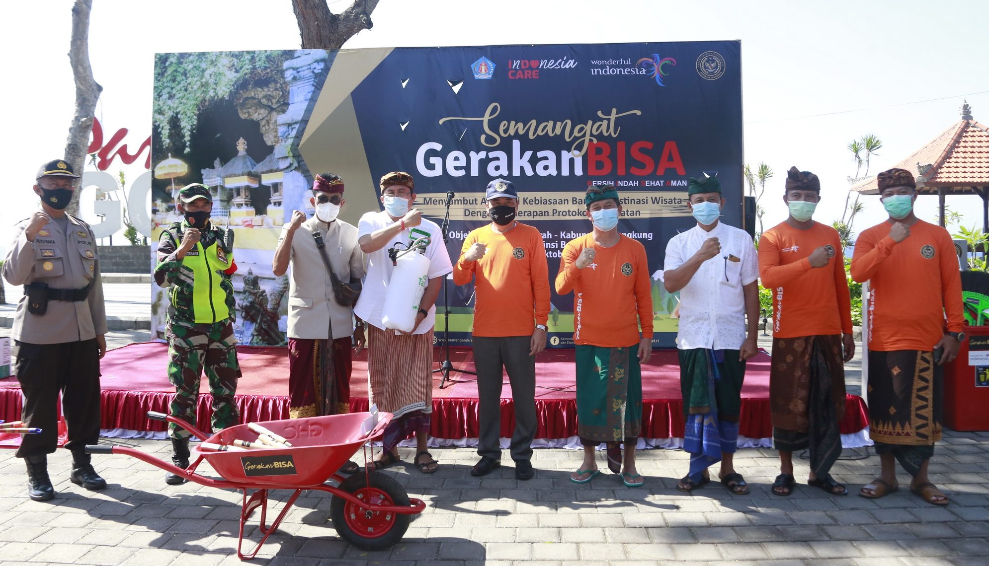 KLUNGKUNG – Kementerian Pariwisata dan Ekonomi Kreatif (Kemenparekraf/Baparekraf) menggelar kegiatan Semangat Gerakan BISA (Bersih, Indah, Sehat, Aman) di objek wisata Pantai Goa Lawah, Kecamatan Dawan, Klungkung, Sabtu (17/10/2020). Gerakan ini sebagai upaya menyambut adaptasi kebiasaan di objek wisata dengan penerapan protokol kesehatan.