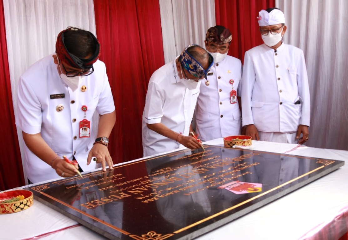TABANAN – Gubernur Bali, Wayan Koster, meresmikan Pasar Adat di Desa Adat Bongan Puseh, Desa Bongan, Kecamatan Tabanan, Rabu (5/1/2022). Peresmian tersebut ditandai dengan penandatanganan prasasti oleh Gubernur Koster dan Bupati Tabanan, I Komang Gede Sanjaya.