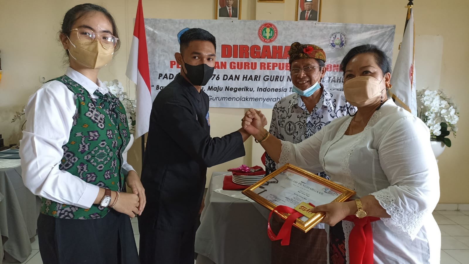 ‘’Terima kasih telah menjadi pelukis masa depan dan peradaban Indonesia,’’ ucap Ketut Nuka mengutip pidato Mendikbud Ristek, Nadiem Makarim, dalam peringatan HGN 2021.