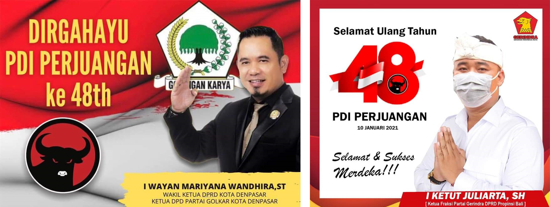HUT ke-48 PDIP pada 10 Januari memang sudah berlalu beberapa hari. Tetapi ada hal remeh yang “tercecer” dari peringatan milad partai terbesar di Indonesia tersebut, yang dirayakan sebulan usai panasnya kompetisi Pilkada 2020. Hadirnya ucapan selamat HUT dari elite partai rival PDIP di Pilkada di Bali, menjadi sisi menarik untuk dijadikan cermin bagi praktik politik kontemporer.