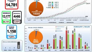 Berdasarkan data tersebut, kini jumlah kasus aktif (pasien dalam perawatan) di Bali berkurang 45 orang menjadi 1.158 orang (7,83%) yang tersebar di 17 RS rujukan dan dikarantina di Bapelkesmas, UPT Nyitdah, Wisma Bima dan BPK Pering.