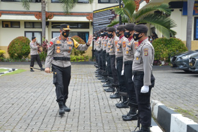 TABANAN – Kapolda Bali, Irjen Putu Jayan Danu Putra, mengunjungi Polres Tabanan untuk mengecek kesiapan pengamanan Pilkada Tabanan 2020, Jumat (4/12/2020). Memastikan personel dapat bertugas di lapangan di tengah pandemi Covid-19 masih merajalela, Kapolda mengingatkan anggota pentingnya disiplin menjaga kesehatan.