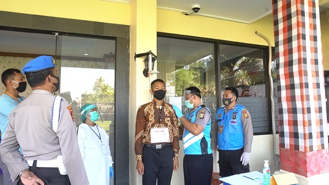 KLUNGKUNG – Sebanyak 16 pendaftar seleksi masuk anggota Polri tahun 2020 yang terdiri dari 8 Akpol dan 8 Tamtama melaksanakan pemeriksaan administrasi tahap awal bertempat di Lobi Polres Klungkung, Jumat (3/7). Ikut memantau pelaksanaan tes awal tersebut, Kapolres Klungkung AKBP Bima Aria Viyasa.
