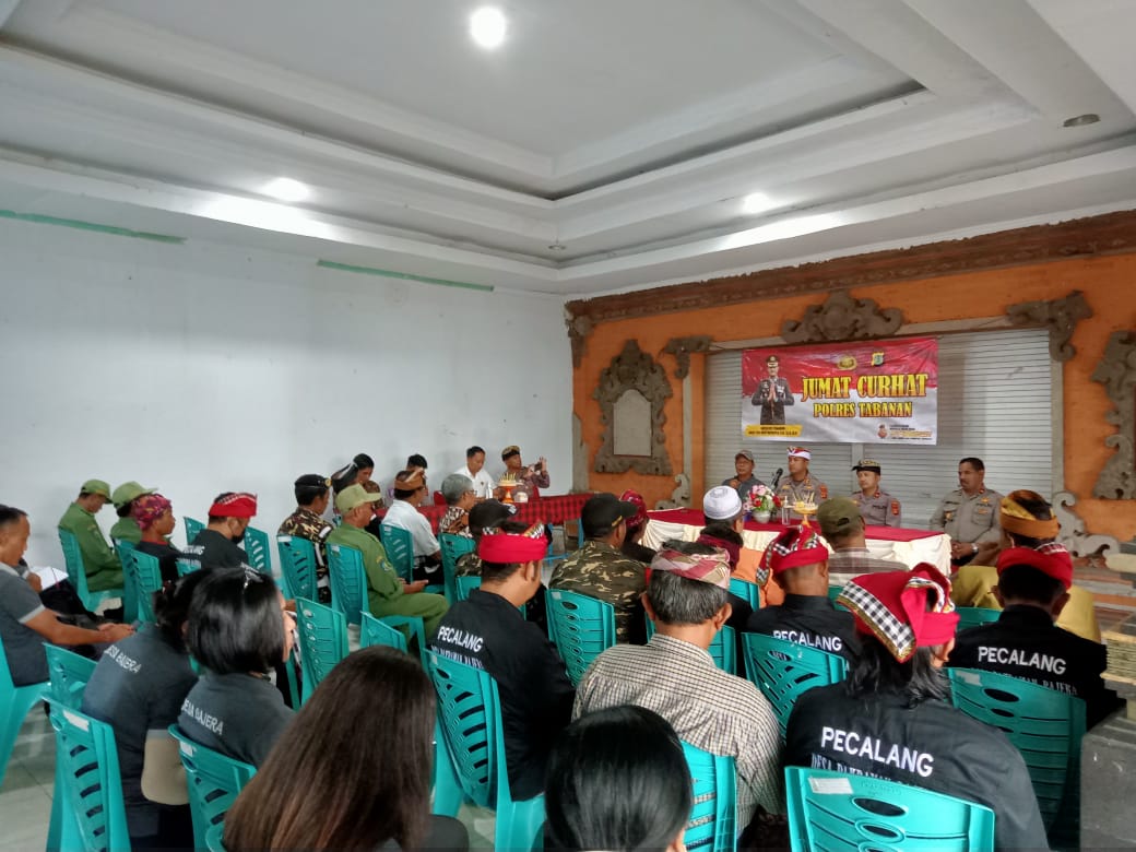 Kegiatan serangkaian acara ‘Jumat Curhat’ itu, dilaksanakan di Aula Kantor Desa Bajera, Jumat (24/3/2023). Kehadiran Kapolres Tabanan itu disambut Perbekel Desa Bajera, I Putu Sukarata, para tomas, todat, dan toga.