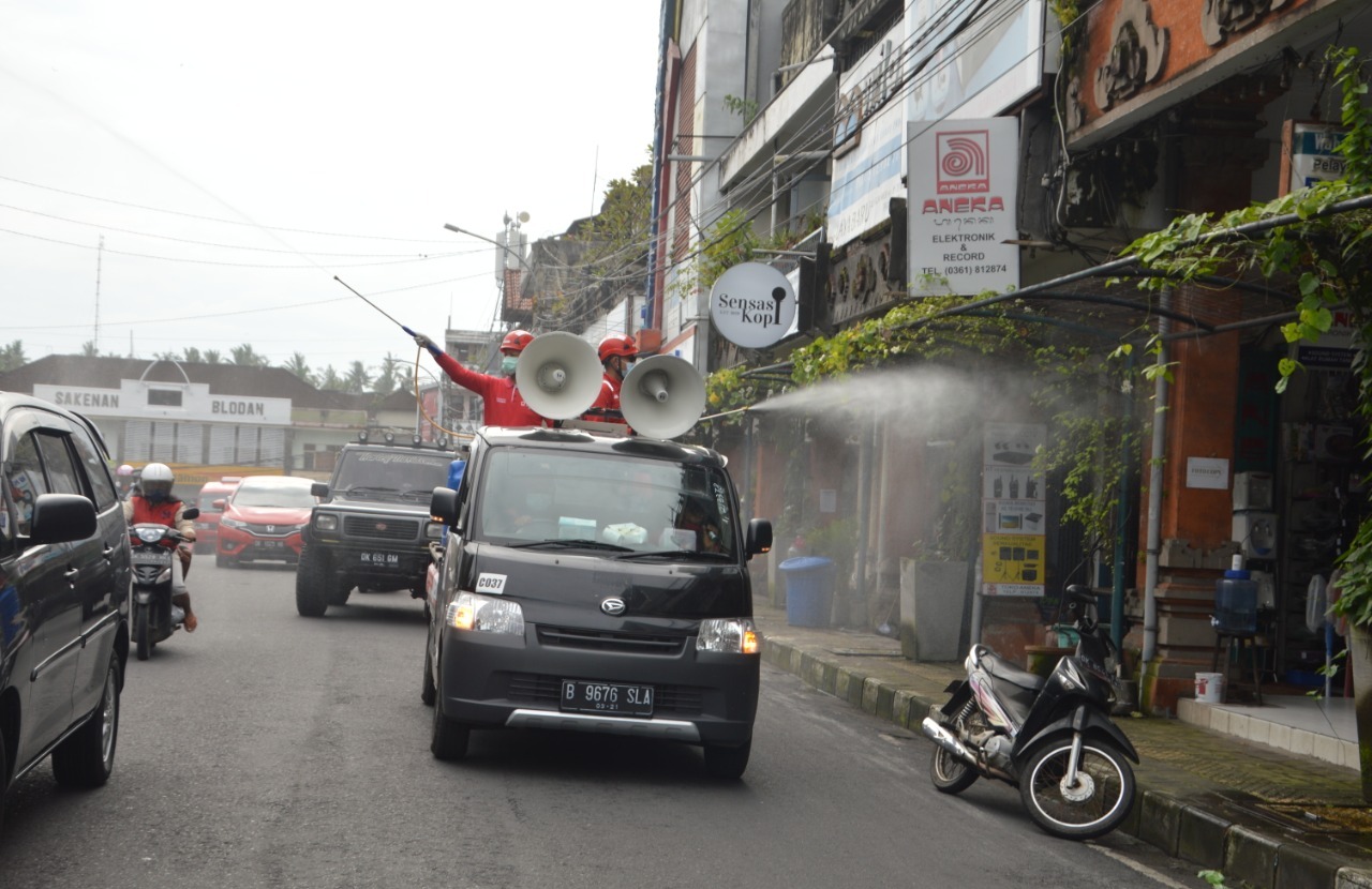 ‘’Kami bersama instansi terkait melakukan penyemprotan dengan disinfektan di beberapa tempat fasilitas umum, seperti di Gedung Kesenian I Ketut Maria, pasar tradisional, terminal, ATM, dan tempat strategis lainnya yang berpotensi menimbulkan penyebaran Covid-19,” kata Mariochristy. gap