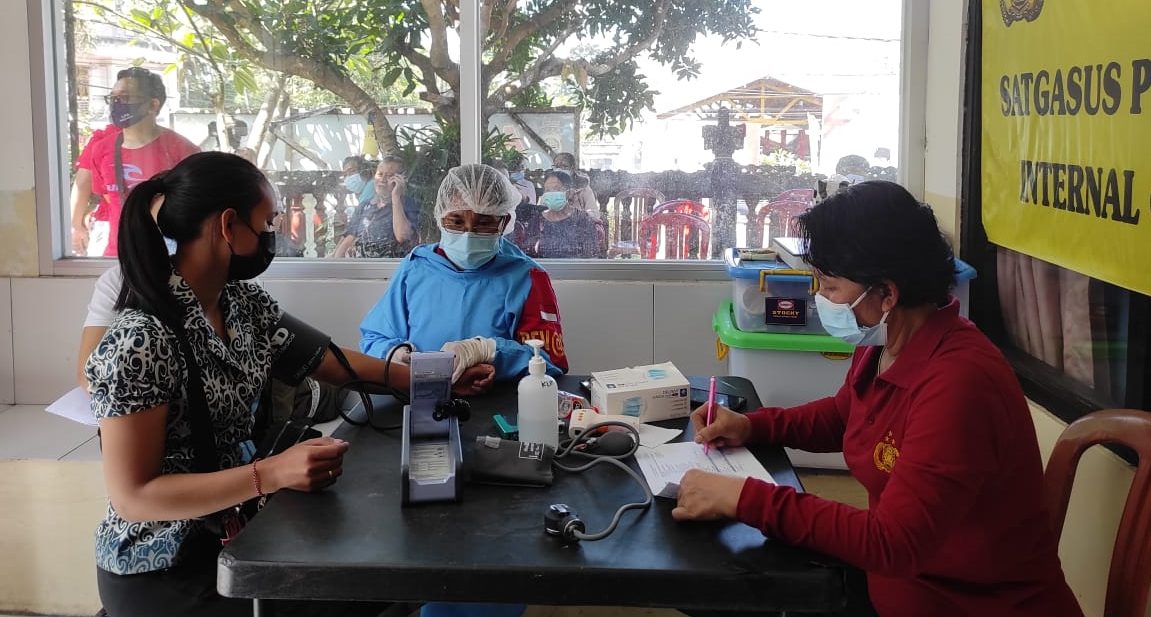 BANGLI – Dalam sepekan terakhir ini, kasus kematian akibat Covid-19 terus terjadi di Bangli meski tidak terlalu banyak. Menyikapi itu, layanan vaksinasi Covid-19 di Klinik Polres Bangli kembali dibuka untuk memfasilitasi warga yang tercecer, meliputi vaksin dosis pertama dan dosis kedua jenis Sinovac. Vaksinasi digencarkan sebagai upaya menciptakan kekebalan kelompok yang diharap pemerintah.