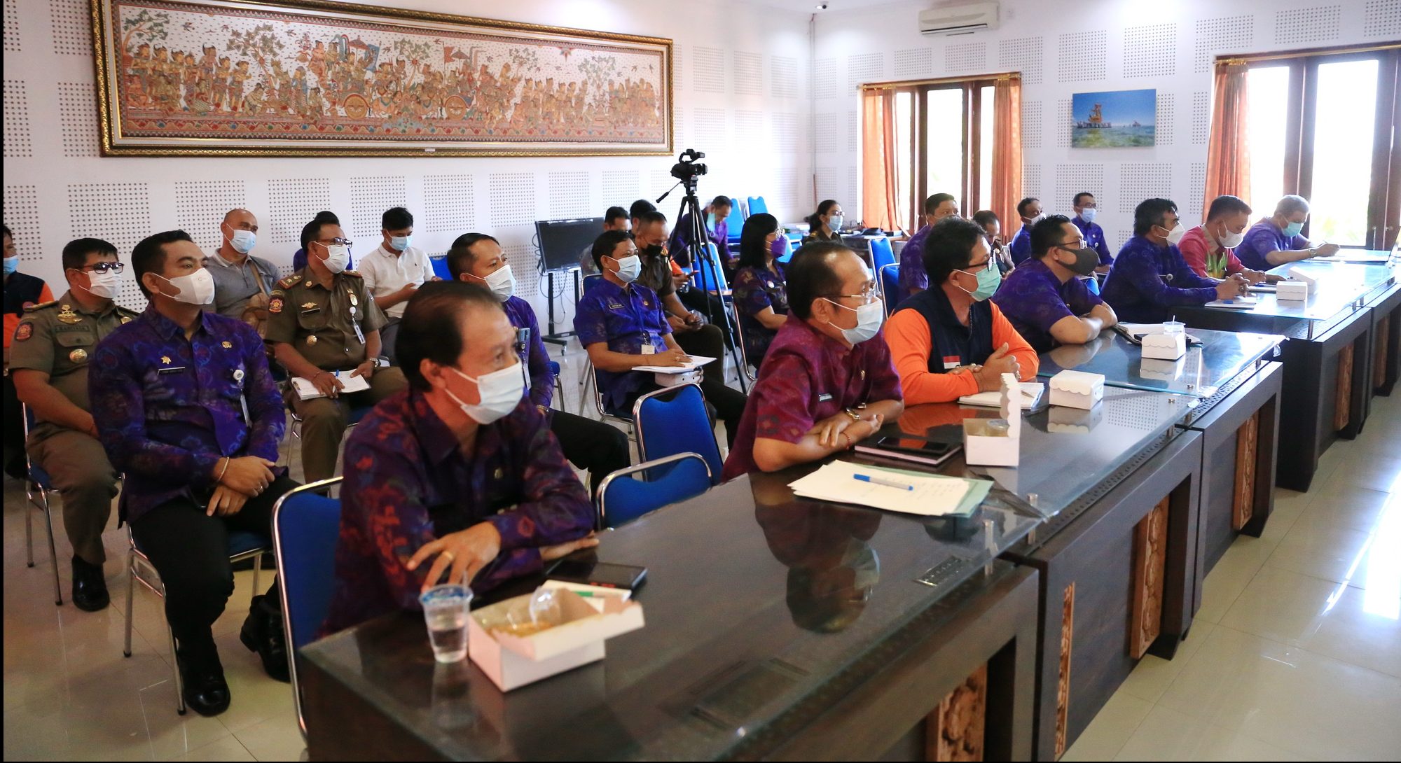 Hal itu disampaikan Bupati Klungkung, I Nyoman Suwirta, Selasa (22/6/2021) saat memimpin rapat pembahasan pelaksanaan vaksinasi dan perkembangan Covid-19 di Kabupaten Klungkung, di ruang rapat kantor Badan Pengelolaan Keuangan dan Pendapatan Daerah (BPKPD) Klungkung. Rapat tersebut dihadiri Forkopimda Klungkung, Sekda I Gede Putu Winastra, kepala OPD terkait, serta para camat di Klungkung.