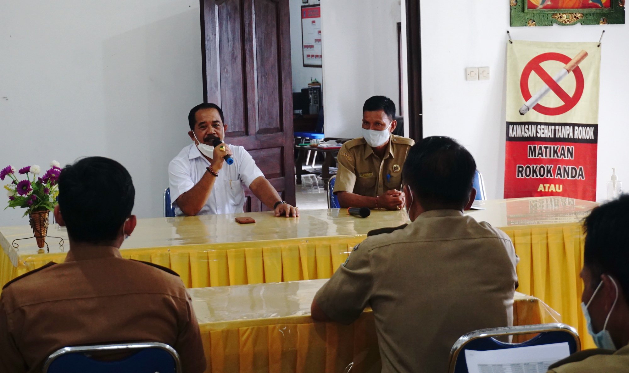 KLUNGKUNG – Wakil Bupati (Wabup) Klungkung, I Made Kasta, berkunjung ke kantor Desa Aan, Kecamatan Banjarangkan, Senin (8/2/2021). Kunjungan ini terkait akan diterapkannya Pemberlakukan Pembatasan Kegiatan Masyarakat (PPKM) sesuai Instruksi Menteri Dalam Negeri untuk pengendalian Covid-19.