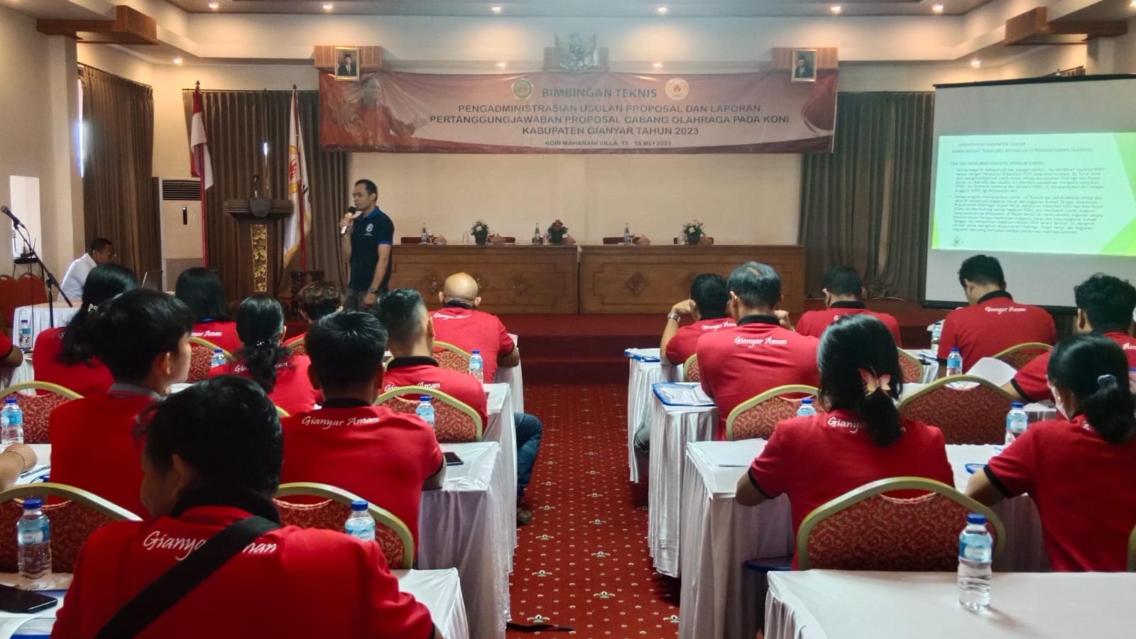 Mewakili Ketua Panitia, Dewa Made Suyana mengatakan, tujuan dilaksanakan bimtek guna meningkatkan kualitas SDM, pengurus cabor di lingkungan KONI Gianyar, khususnya para bendahara dalam pengadministrasian keuangan. Pula menumbuhkembangkan paradigma baru dalam mengelola dana hibah yang diterima KONI Gianyar, agar dapat dikelola secara transparan dan akuntabel.