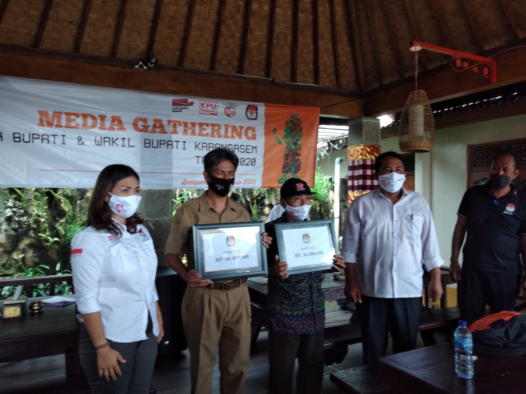 Di kesempatan terpisah, KPU Karangasem menyerahkan santunan secara simbolis kepada perwakilan keluarga dua anggota PPS yang meninggal saat melaksanakan tugas. Santunan diserahkan Ketua KPU Karangasem, Ngurah Gede Maharjana.
