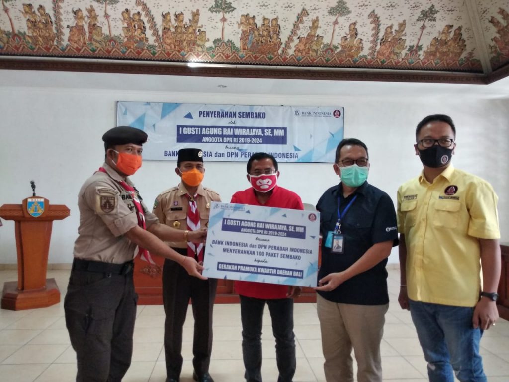 DENPASAR – Bertepatan Peringatan Hari Lahir Pancasila, Anggota DPR RI Komisi XI 2019–2024 I Gusti Agung Rai Wirajaya, SE, MM. bersama Bank Indonesia, serahkan 300 paket bahan pokok kepada Kwartir Daerah (Kwarda) Gerakan Pramuka Bali, Senin (1/6/2020).