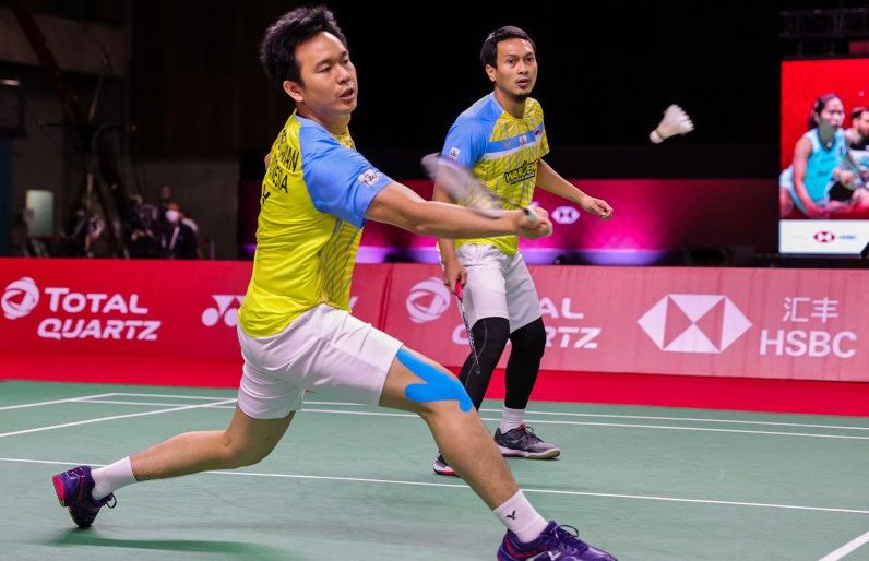 GANDA putra Indonesia, Hendra Setiawan/Mohammad Ahsan masih punya peluang lolos babak penyisihan Grup B ganda putra BWF World Tour Finals meski mengalami kekalahan pada laga kedua yang digelar, Kamis (28/1/2021).