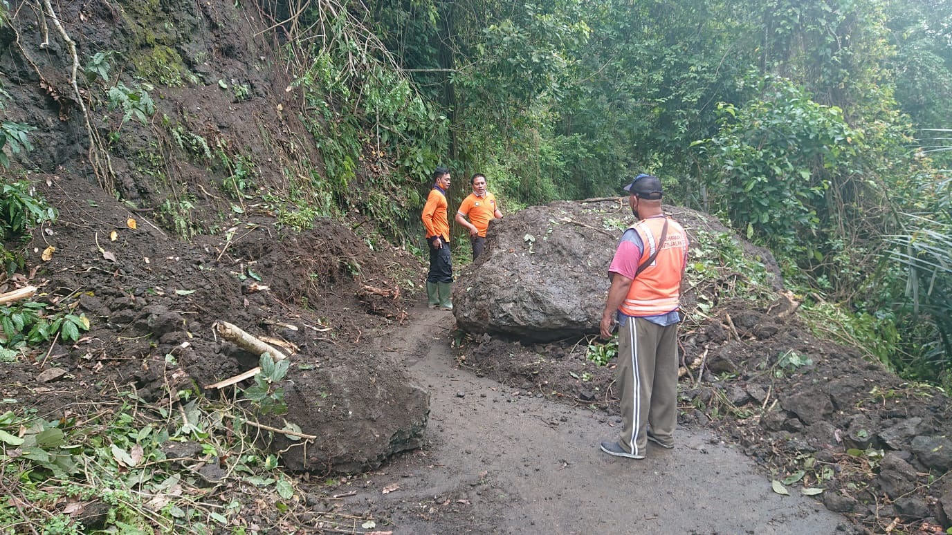 “Batu tersebut berukuran cukup besar dan tepat berada di tengah jalan, sehingga tidak bisa dilewati kendaraan roda empat. Untuk sementara hanya bisa dilewati kendaraan roda dua, tapi tetap harus hati-hati karena jalan sangat licin,” terang Arimbawa.