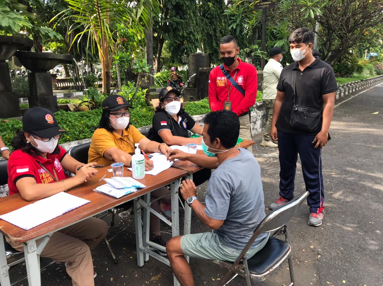 DENPASAR – Berdalih lupa pakai masker, 4 orang pelanggar protokol kesehatan (prokes) langsung didenda di tempat saat Tim Yustisi Denpasar melakukan patroli pelaksanaan pembatasan kegiatan masyarakat (PPKM) di Jalan Sutoyo Kelurahan Dauh Puri Denpasar Barat, Jumat (16/4/2021).