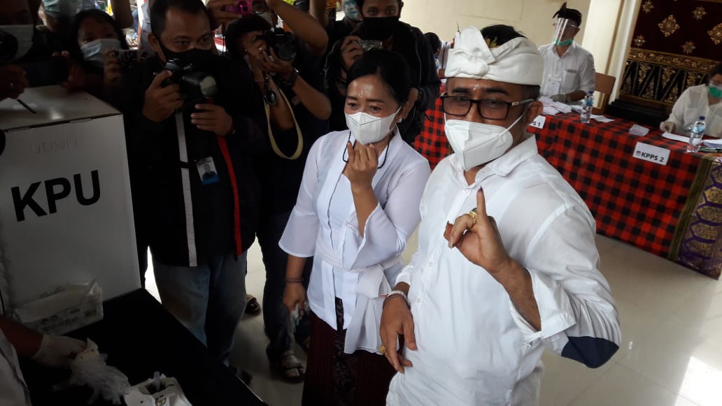 DENPASAR – Angka 9 dinilai menghadirkan “keberuntungan” bagi paslon IGN Jaya Negara-Kadek Agus Arya Wibawa (Jaya Wibawa) dalam Pilkada Denpasar 2020, Rabu (9/12/2020). Entah ada kaitan atau tidak, yang pasti paslon ini menorehkan capaian tertinggi dalam Pilkada 2020 melawan penantang di lima kabupaten/kota di Bali, Rabu (9/12/2020). Perolehan suara paslon yang diusung PDIP, Gerindra dan Hanura ini melambung sampai 81 persen berbanding 19, persen yang diperoleh lawannya, paslon Ngurah Ambara Putra-Bagus Kertha Negara (Amerta).