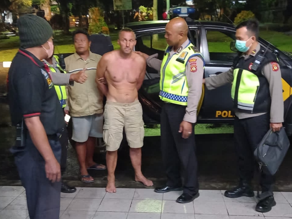 GIANYAR – Jajaran Polsek Ubud mengamankan Alexsei T, wisatawan asal Rusia, yang menunjukkan gejala gangguan kejiwaan di Wismaya Homestay, tepatnya di depan Rumah Sakit Aricanti, wilayah Desa Mas,Kecamatan Ubud, Sabtu (27/8/2022) malam.