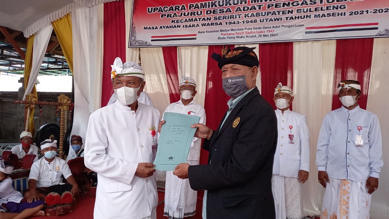BULELENG – Meskipun ada penolakan terhadap surat keputusan (SK) atas pengukuhan Bendesa Desa Adat Pengastulan, Kecamatan Seririt, Buleleng oleh beberapa warga setempat, namun Majelis Desa Adat (MDA) Kabupaten Buleleng tetap melakukan pengukuhan dan pelantikan bendesa adat terpilih yakni Mangku Nyoman Ngurah. Proses pengukuhan berlangsung pada Rabu (26/5/2021) di halaman Pura Agung Desa Pengastulan, yang dipimpin oleh Ketua MDA Buleleng, Dewa Putu Budarsa.