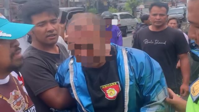 Video penangkapan oknum polisi oleh warga sempat viral di media sosial. Dalam video tersebut terlihat sejumlah warga mengamankan seorang pria berkaus hitam yang mengenakan jas hujan.