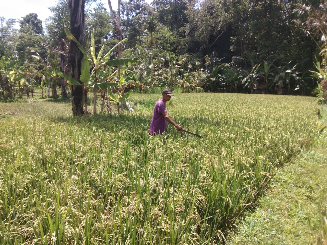 “Dengan kondisi padi rusak, ini juga berdampak kesulitan mencari sekaa manyi (kelompok pemanen padi). Tukang panen juga akan rugi dengan kualitas padinya, karena pastinya mereka tidak mau memanen padi puyung (kosong),” cetusnya dengan nada lesu.