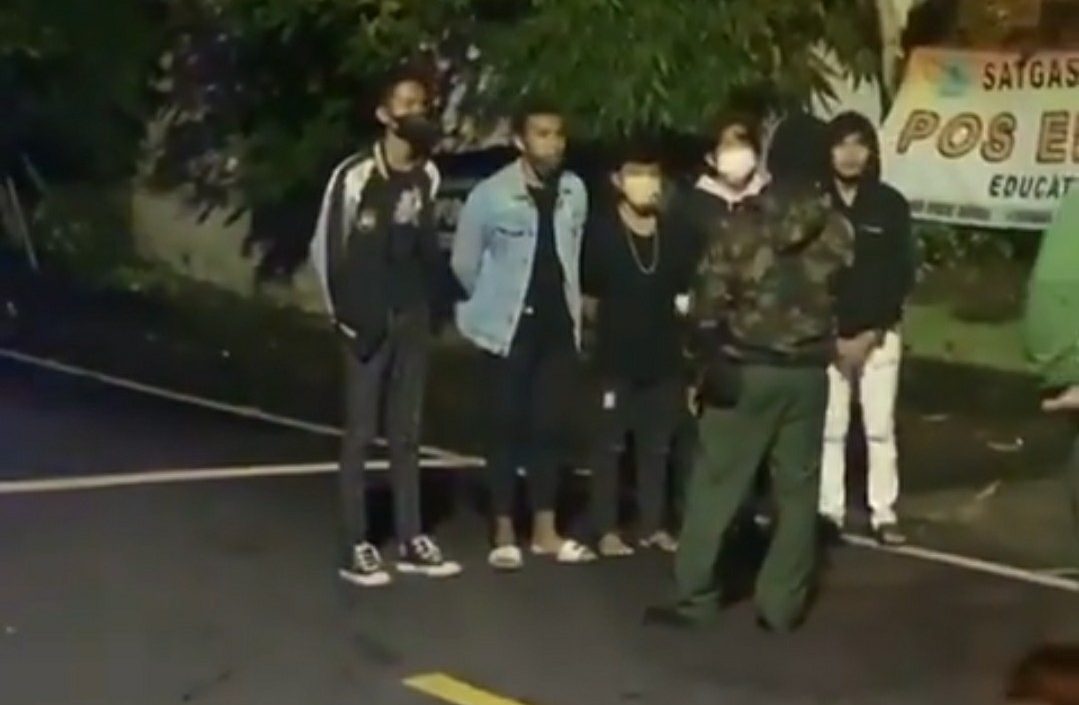 MANGUPURA – Petugas keamanan dan pecalang Desa Pecatu, Badung, Bali, Sabtu (27/2/2021) malam menertibkan beberapa genk motor yang mengganggu kenyaman masyarakat karena kebut-kebutan dan menggunakan knalpot brong. Berdasarkan keterangan petugas, anak-anak motor itu masih berstatus pelajar dan belum mempunyai KTP. Mereka diberikan hukuman push up dan pembinaan, setelah itu diminta pulang ke rumah masing-masing.