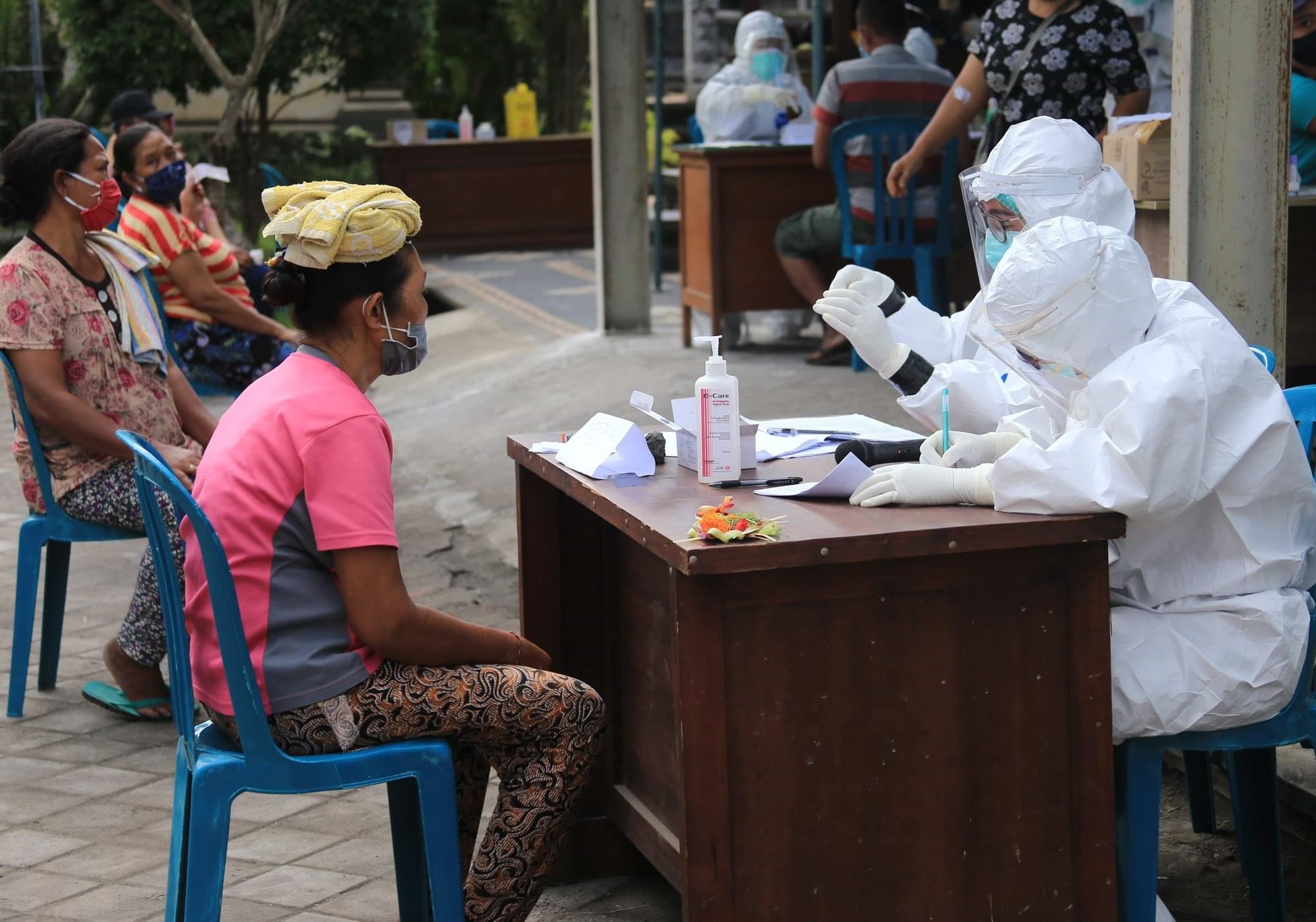 KLUNGKUNG – Dinas Kesehatan Klungkung melakukan tes cepat (rapid test) massal terhadap ratusan pedagang di Pasar Kusamba, Dawan dan Pasar Mentigi, Nusa Penida, Selasa (30/6). Upaya ini dilakukan untuk skrining awal, mengingat kasus transmisi lokal Covid-19 di Klungkung sebagian besar terjadi di pasar.